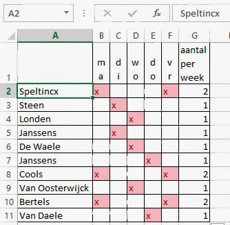 - Plaats in verschillende cellen een kruisje.