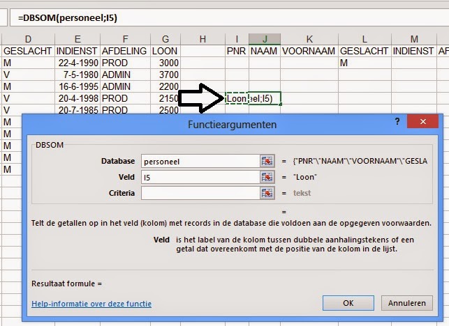 - Klik op de functie DBSom.